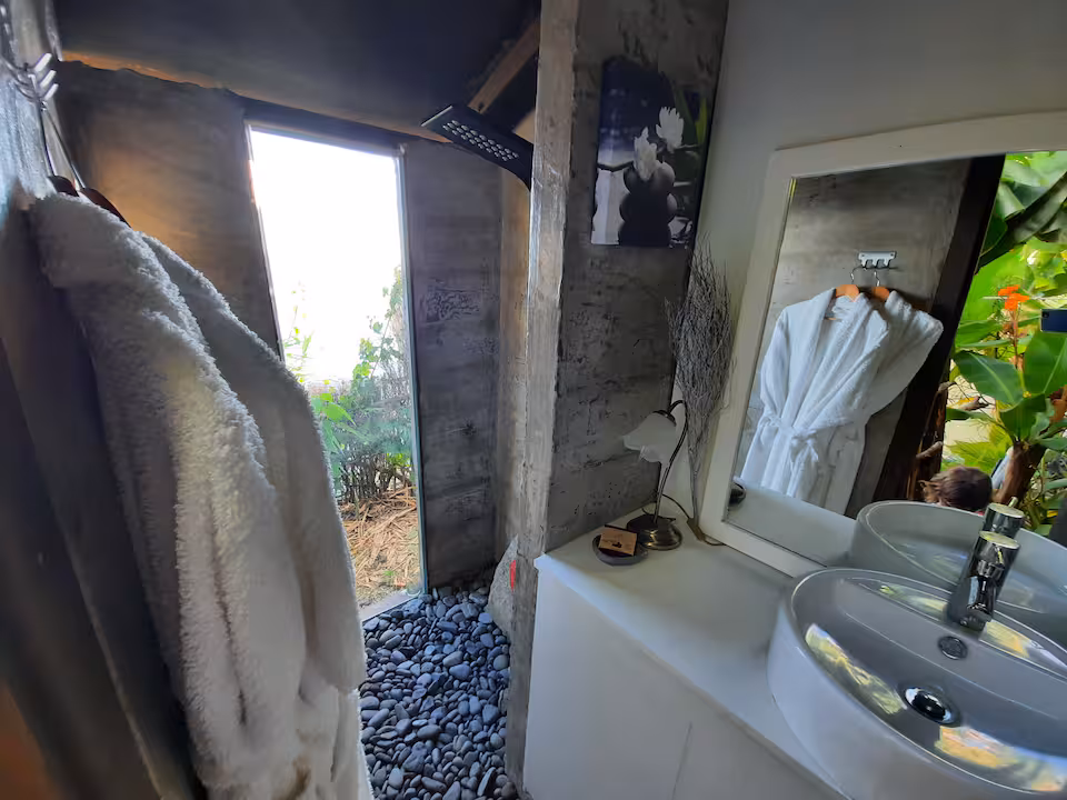 The only sounds you’ll hear in this place are the 30-meter waterfall cascading within the property and the waves 100 meters away on the beach, so we’re sure this is the perfect location for a few days of relaxation in nature while having all the necessary comforts.